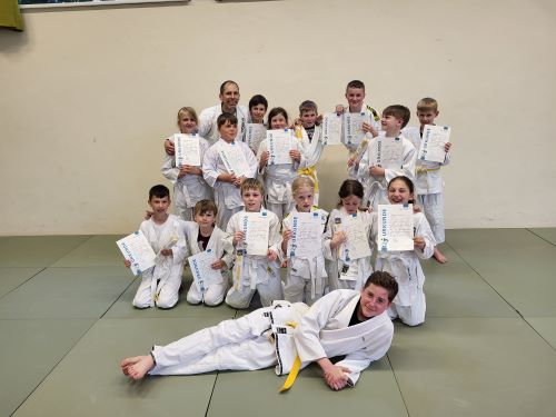 So sehen die glücklichen Prüflinge der Ju-Jutsu Kindergruppe aus.